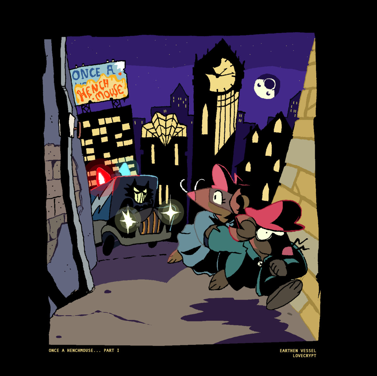 When using the game’s title, write out “Once a Henchmouse…” with the ellipsis. The goal is to instill in the reader’s mind the complement of this phrase, “…always a henchmouse”, to hint that unless the two mice are able to escape a life of crime on the one hand, or a life sentence on the other, they’ll be trapped forever either way - a lose-lose situation.